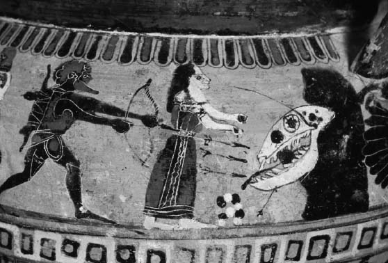 Heracles’ victory against the Monster of Troy is depicted most dramatically on an ancient Greek krater, or vase, now in the Museum of Fine Arts in Boston. Here is the beast peppered with arrows by the hero as he rescues the Trojan princess Hesione. It is a very peculiar monster: just a head, white and skeletal, but to the modern eye it is impossible to mistake what we are looking at – a fossilised skull of a prehistoric creature projecting from a rocky outcrop; it is a two-and-a-half thousand-year-old black-figure masterpiece of palaeontology.