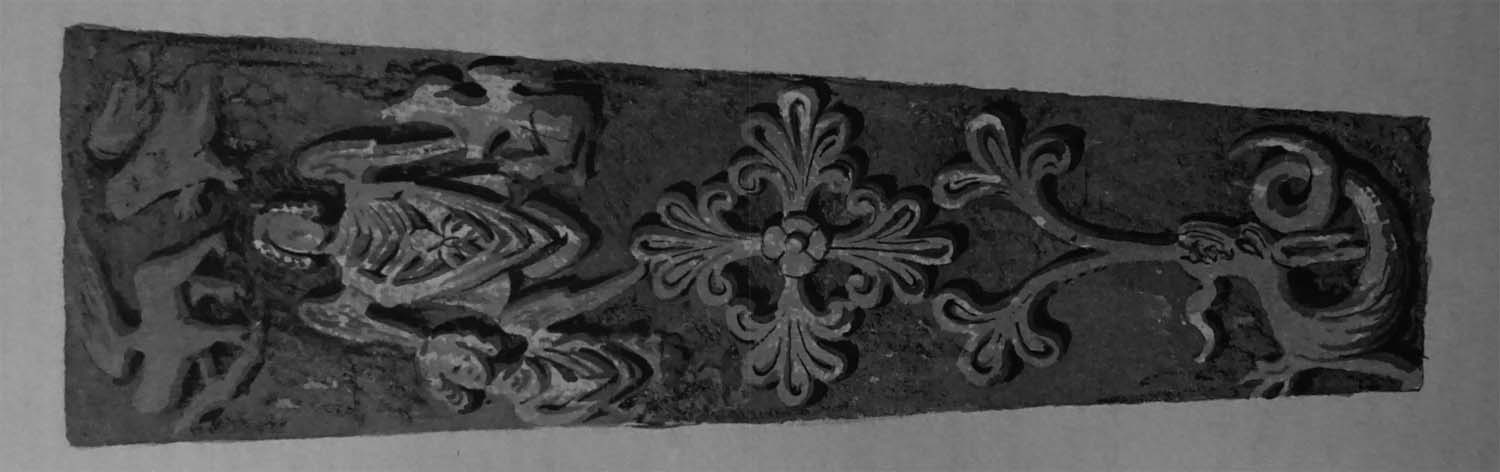 Buckler’s sketch picks out the four figures around a floriated cross, the large angel above it, and the dragon below. Of the eight known illustrations of the tomb, which predate the first known photograph in 1901, J. C. Buckler’s best captures the work of the mason. He is prepared to sacrifice detail to impression. He is trying to show that this is stone, and stone of great antiquity: the smudged blank face of the angel, the wear on the other figures slowly and inexorably being smoothed back into the block of marble by the passing of time and its blows and caresses. For an architect, he is surprisingly undraughtsman-like here. It is a work of art and not just a record of the tomb at a moment in time. The art and craftsmanship of the mason inspired Buckler to create something much more than just a topographical record.