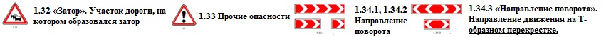 1.34.1, 1.34.2 «Направление поворота». Направление движения на закруглении дороги малого радиуса с ограниченной видимостью. Направление объезда ремонтируемого участка дороги.