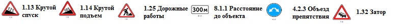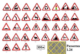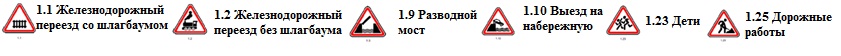 Вне населенных пунктов знаки 1.1, 1.2, 1.9, 1.10, 1.23 и 1.25 повторяются.