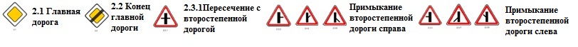 Знаки приоритета устанавливают очередность проезда перекрестков, пересечений проезжих частей или узких участков дороги.