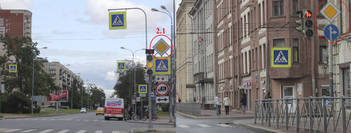 2.1 «Главная дорога». Дорога, на которой предоставлено право преимущественного проезда нерегулируемых перекрестков.