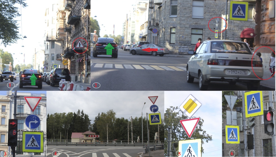 Рис. 23 (1) – примыкание второстепенной дороги справа, 3,4,5 и 6 – знак 2.4 «Уступить дорогу»