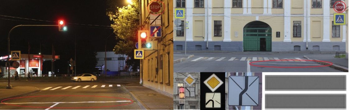 На рис. 24 (слева), остановка в данный момент времени не требуется, так как светофор работает, а при выключенном светофоре начинает действовать знаки. На рис. 24 (справа) светофора нет, поэтому остановка транспортного средства требуется всегда, остановиться необходимо около линии разметки 1.12.