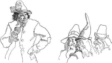 …И вот эти двое карабкаются вверх по высохшему руслу ручья, попадают в ущелье и, пройдя его, выходят в лощину, «похожую на маленький амфитеатр». И Рип ван Винкль увидел – внизу на площадке «компания странных личностей резалась в кегли. На них было причудливое иноземное платье», а на лицах – суровое выражение. Они молчали; «никогда еще Рипу не доводилось присутствовать при такой унылой забаве». И только стук шаров будил в горах громкое эхо, грохотавшее подобно громовым раскатам.