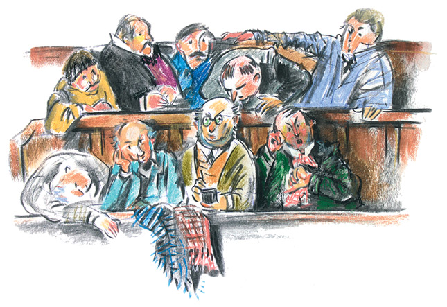 Присяжные заседатели (в отличие от присяжных поверенных) не были юристами (это правило сохраняется и сегодня). Они знакомились с обстоятельствами дела и должны были исключительно на основе своего житейского опыта, здравого смысла и совести вынести короткий вердикт – виновен или не виновен.