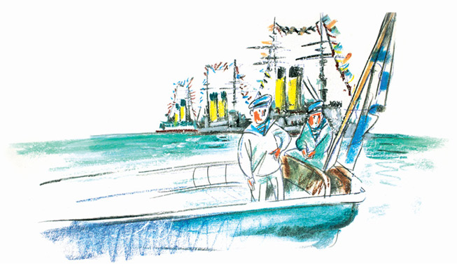 «После краткой подготовки к бою в 11 часов 10 минут “Варяг” и “Кореец” снялись с якоря. Когда русские корабли проходили по внутреннему рейду, команды иностранных стационеров выстроились во фронт. Военные оркестры играли “Боже, царя храни!”. Когда поравнялись с “Паскалем”, французы сломали строй и, подбрасывая в воздух свои береты, провозгласили: “Виват!” И следом за русским гимном над свинцовыми водами гавани полились величественные аккорды “Марсельезы”… Мы салютовали этим героям, шедшим столь спокойно и гордо на верную смерть…»