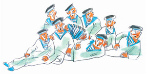 Наверх вы, товарищи, все по местам,Последний парад наступает…Затем – на ту же тему неравной и доблестной битвы крейсера «Варяг»: