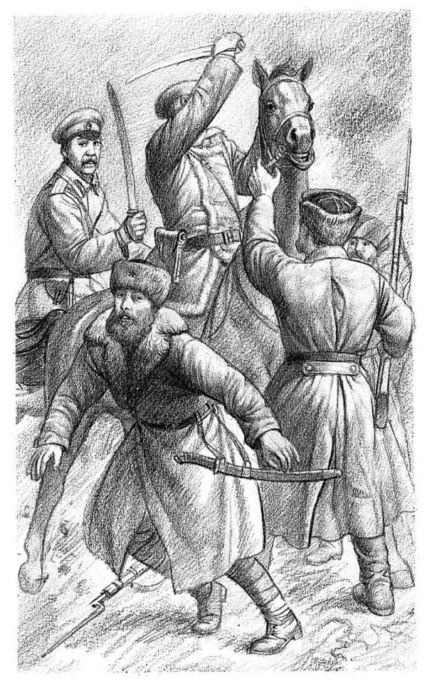Луч зашедшего было в прозрачные облака солнца скользнул по золотым погонам офицера, вырвавшегося, остервенело посылая шпорами взмыленного коня, далеко вперед. Он, опередив лаву, с гранатой в руке мчался, выписывая зигзаги, прямо на тяжелый треск пулемета. Красноармеец, в спешке выскочивший из окопной ячейки, начал с лихорадочной торопливостью целиться, но не успел дать залп, снятый хладнокровно метким выстрелом Некрасова. Воздух разорвал грохот взметнувшегося на месте пулемета разрыва. В кинувшем гранату офицере Юрий узнал Женю.