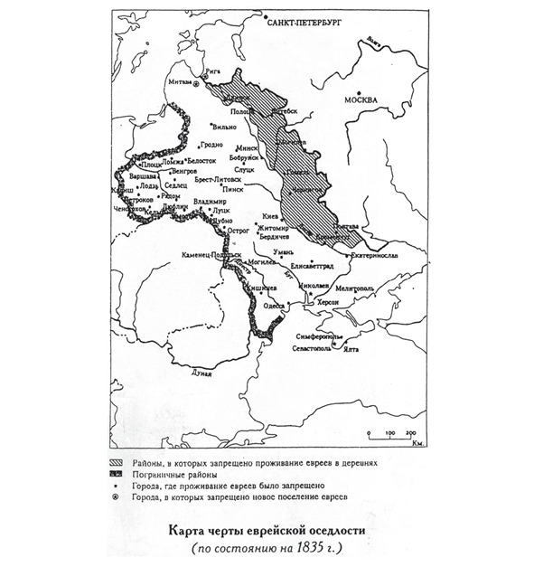 Евреи были чужеродными для русских царей, не понимавших их культуру и религию, и поэтому указом от 13 июня 1794г. была определена географическая территория для их расселения. Эта территория была названа «чертой еврейской оседлости».