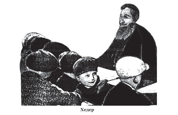 «В худшем варианте, хедер помещается в маленькой дымной комнате, а дети рассажены на лавках и даже на голом полу. Учитель, иногда, сидит на столе и не всегда опрятно одет. И так он управляется с детворой. В этих хедерах дети находятся с утра до вечера, часто без еды, кроме пятницы. В результате дети не могли научиться ни правильно мыслить, ни правильно изъясняться».