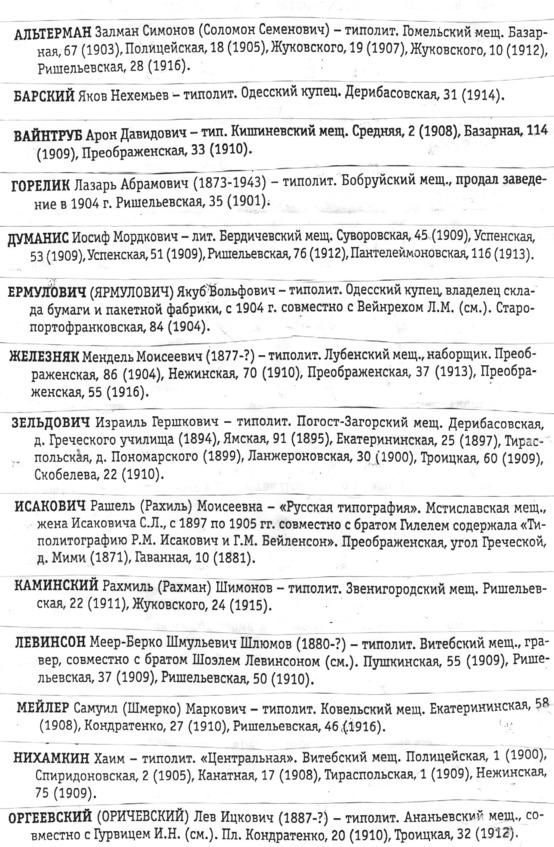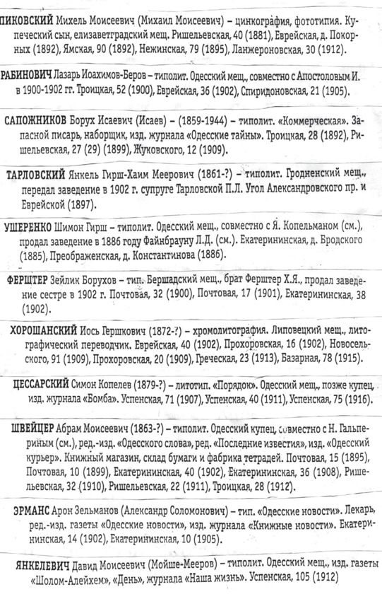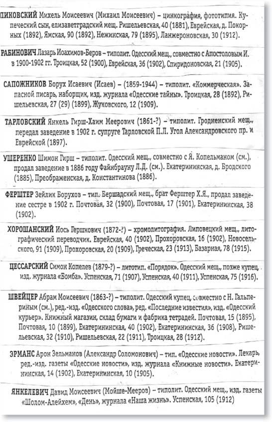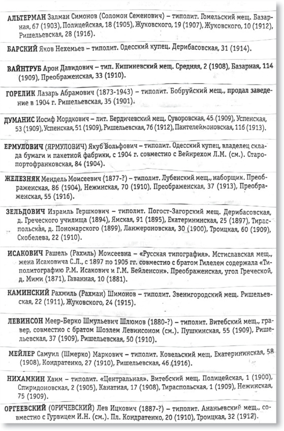 В справочнике Бельского «Еврейские типографии старой Одессы» приведены данные о 298-и типографиях.