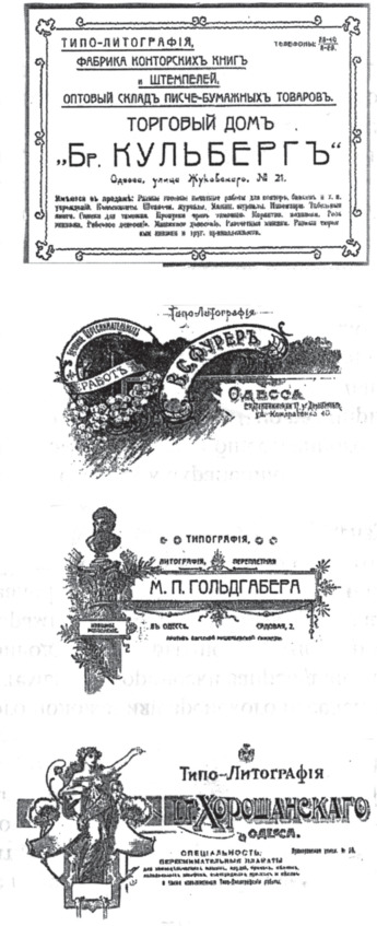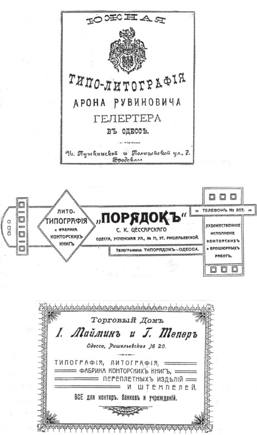 Спустя пятьдесят лет, после появления первых еврейских типографий, в Одессе, когда условия для всех заведений печати стали равны независимо от национальности хозяина заведения, в 1911 году функционировали 124 типолитографии, из них 97 (78%) принадлежали евреям. Это свидетельствует об огромной роли еврейских печатников в создании прочной полиграфической базы в городе (179).