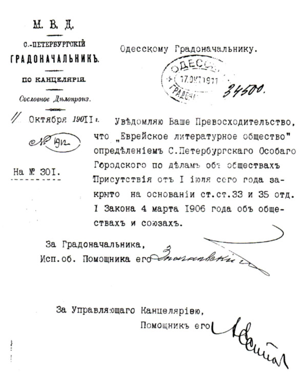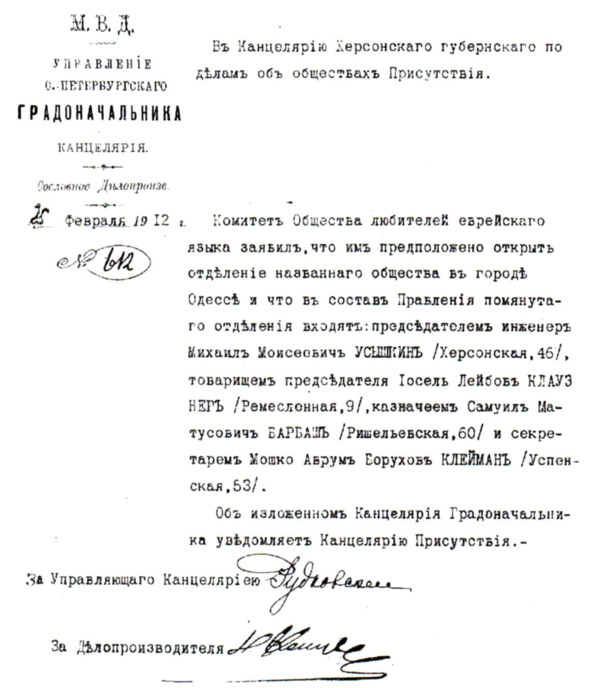 Некоторые документы, относящиеся к еврейской общественной деятелыности