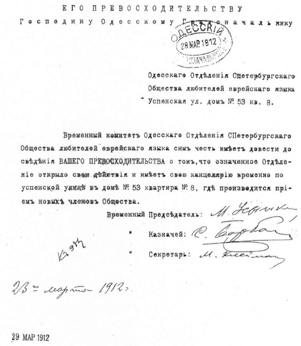 В Одессе оживилась еврейская общественная жизнь. В 1918г. работал Еврейский народный университет, в котором лекции читались на иврите. Еврейский историк Саул Боровой (1903—1989) пишет в своих воспоминаниях, что Х. Н. Бялик читал лекции по истории еврейской средневековой поэзии, а раввин Симха Осовский (1889—1953) – по истории еврейской средневековой культуры.