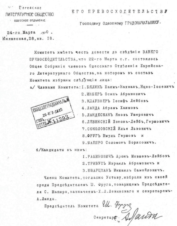 В конце 1919г. в Одессе было организовано еврейское товарищество «Сефер» («Книга»). 6 января 1920г. товарищество открыло общественную библиотеку имени Х. Н. Бялика. Заведовал библиотекой доктор Виленский. Когда в Одессу пришли большевики, товарищество «Сефер» прекратило свою деятельность, а в 1921г. библиотека была национализирована и присоединена к Губернскому отделу народного образования. С сентября 1922г. она существовала как «Еврейская Академическая библиотека» на ул. Кооперативная 35.