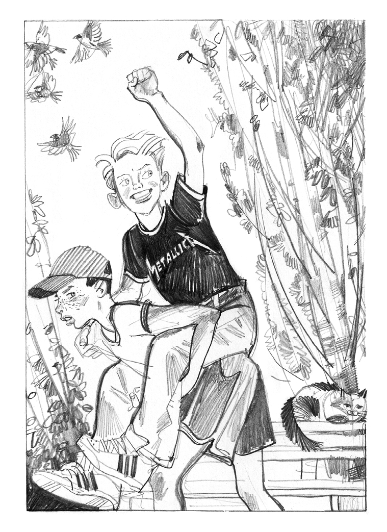 Вовчик подошел, чуть нагнулся, а Юрка забрался на лавочку, потом ему на спину и, как жокей, пнул ногой.