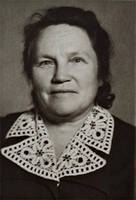 «В годы войны помогали колхозу – проводили собрания, где знакомили колхозников с обстановкой на фронте. Собирали, готовили и отправляли на фронт тёплые вещи. Работая агитатором, проводила подписку на заём. Летом у учителей отпусков не было. Работала бригадиром мобилизованных (мобилизованными были: технички, учителя из 3-х школ).