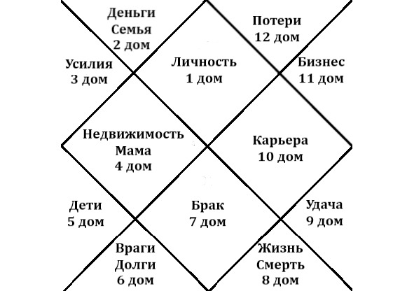 Напомню, что 1, 4, 7 и 10 – это кендры или угловые дома, а 1, 5 и 9 являются самыми благоприятными домами или триконами. Поэтому даже если злая или пораженная планета находится в кендрах, то она улучшается.