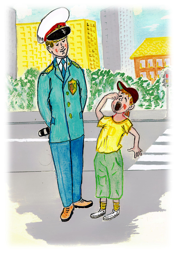 В нашем городе веселье,Собрался народ,Все галдели и шумели:– Ну, когда же главное произойдёт?– Погодите не шумите!..Вы на улицу взгляните-На улицу «строителей»…У улицы – событие,Всеобщее открытие!Ленточку видите,Цвета изумруд,Поперёк проезжей части?Потому что нынче праздник!От того танцуют – пляшут,Хлопают хлопушки даже!..Песенки поют.Шум и веселье – из-за новоселья!..– Новоселье у кого?Улыбнулся постовой:– Вот, у улицы-красавицы,У целой мостовой!Оркестр маршем грянул…Гости на тротуар отпрянули,Все ждали момент,Когда ж разрежут ленту,На сувениры…Но вот – всё готово…Начальник зачитал приветственное слово,Фейерверк рассыпался золотым дождём,Ленточку на части разделили,Героям труда вручили!Постовой отмашку дал…И поток машин помчал!..Светофор подключился,Глазастый, лучистый…Важный как часовой!..А рядом постовой!Умница улица – старается, трудится…Торжество растаяло, будто не было его.Поток машин гудел, шуршал по мостовой…А улица и вправду – красавица!Улыбаясь – думал постовой…Аллея вон, какая кудрявится,Зелёною берёзовой листвой…И правила вроде… соблюдаются,И светофор мигает озорно,И пешеходы идут – не толкаются,Автомобили соблюдают режим скоростной.Размечтался постовой, разомлел…И козу, идущую, не углядел…Перед ним на перекрёстке стояла… коза!..