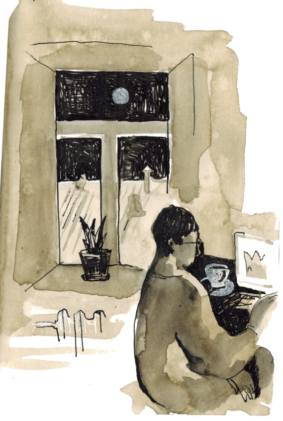 Великий ученый Миша хочет сосредоточиться, но у него ничего не получается. Темная комната, только яркое пятно света настольной лампы лежит на книге.