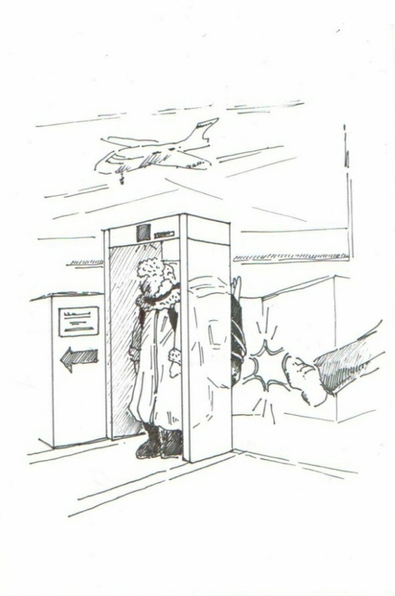 Тулуп в рамку пролез, а рюкзак заклинило. Я через эту громоздкость громко говорю милиционеру, что конвоирую эту пьяную вещевую свалку в Ханты-Мансийск, для чего у меня есть пистолет, о котором я вспомнил перед рамкой.