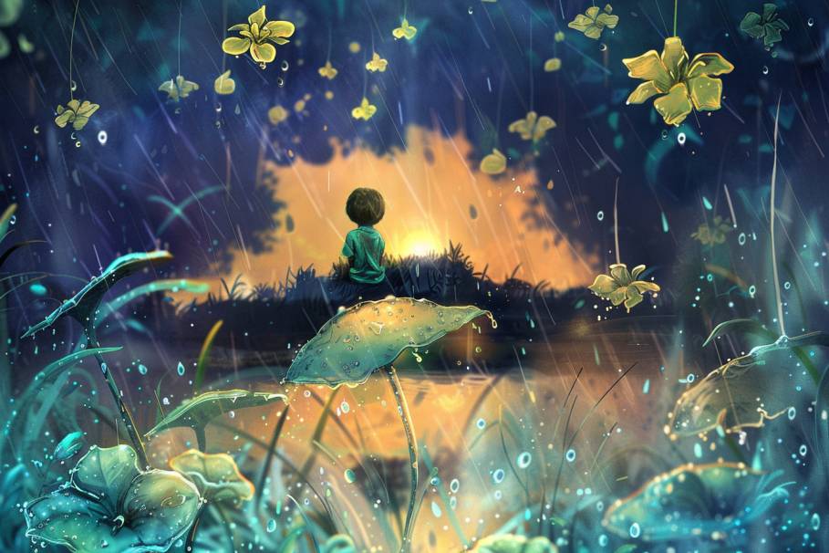 Лео слушал, как песня Дождевика наполняет воздух чистотой и свежестью, как она приглашает реки петь в унисон, и как деревья шепчут в такт каплям, падающим на их листья. Он увидел, как земля впитывает воду, как цветы раскрываются в благодарность, и как мир вокруг него оживает после жажды.
