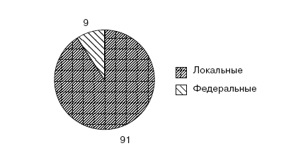 Рис. 1.23. Доля локальных и федеральных новостей в эфире ТРК медиахолдинга, %