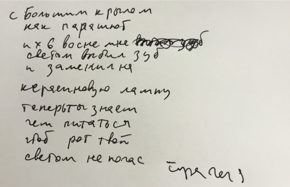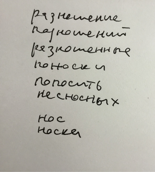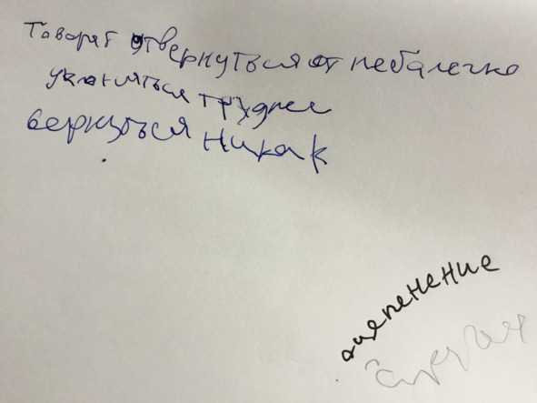 Кто-то оперирует чуть ли не шестым звуком, кому-то нужно обязательно писать, это пропасть. Но от стресса мозг выключает цензоры. Сурия захихикала, я один язык слышу или вижу в другом. Те же слова, звуки, иногда ощущение, почему они друг друга не понимают, раз у них есть столько одинаковых объектов. Как будто они на одной волне, но никто им этого не сказал. Сурия опять захихикала, скромно прикрыв рукой рот. И вот, я здесь. Может впору осваивать состояние, в котором все на одной волне, хи-хи-хи. Помощь лингвистически моно-голодающим инопланетянам.