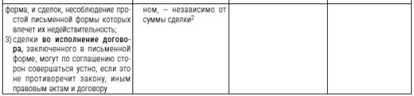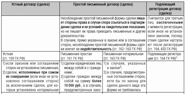 2. Например, договор залога (ст. 339 ГК РФ), продажи недвижимости (ст. 550 ГК РФ), договор дарения движимого имущества, когда дарителем является юридическое лицо и стоимость дара превышает 3 тыс. руб. или договор содержит обещание дарения в будущем (п. 2 ст. 574 ГК РФ), договор аренды на срок более года, а если хотя бы одной из сторон договора является юридическое лицо, то независимо от срока (п. 1 ст. 609 ГК РФ), договор найма жилого помещения (п. 1 ст. 674 ГК РФ), договор транспортной экспедиции (п. 1 ст. 802 ГК РФ).