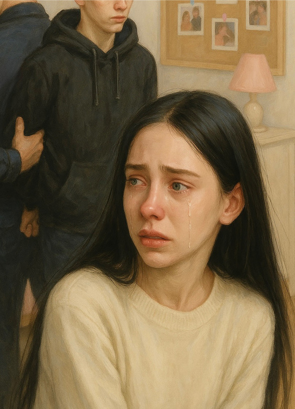 Так он и остался с задумчивым видом. Задумалась и я. На фоне кто-то настойчиво звонил в звонок, но мы не обращали на это внимания, мысли были заняты другим. Дверь открыла мама, а потом послышались посторонние голоса. Они приближались. Мы среагировали, когда уже к нам зашли родители и… люди в форме. Мое сердце пропустило несколько ударов.
