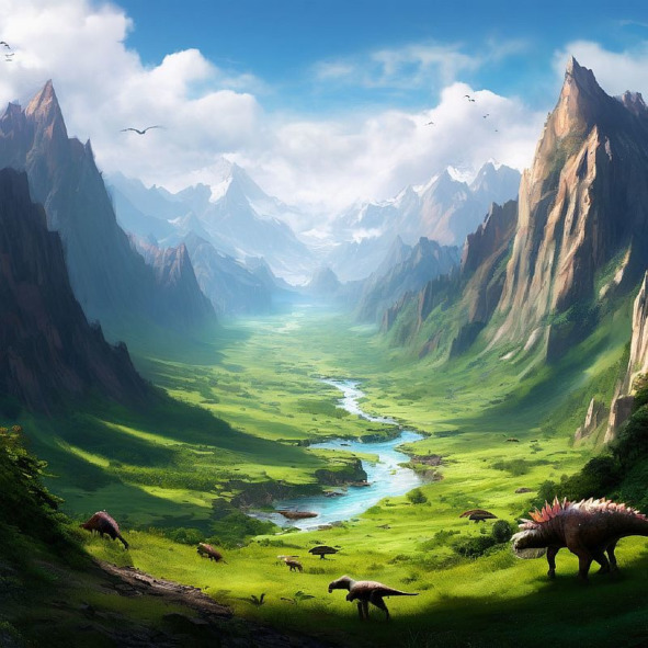 Генри не стал направлять звездолет прямо в долину, боясь что их сразу растопчут гигантские существа. Звездолет приземлился на другой стороне, среди камней и кратеров. Долину опоясывали горные вершины.
