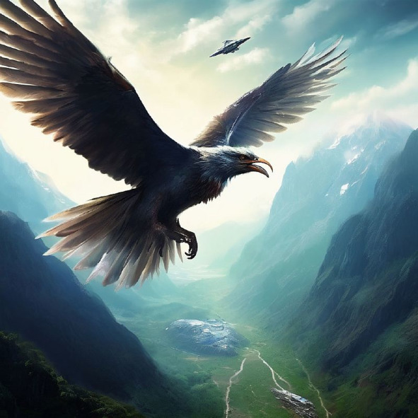 Еле успели забежать в звездолет и убрать трап. Огромная птица схватила своими мощными когтями звездолет и взмыла со своей добычей вверх. В иллюминаторе видны были огромные острые когти.