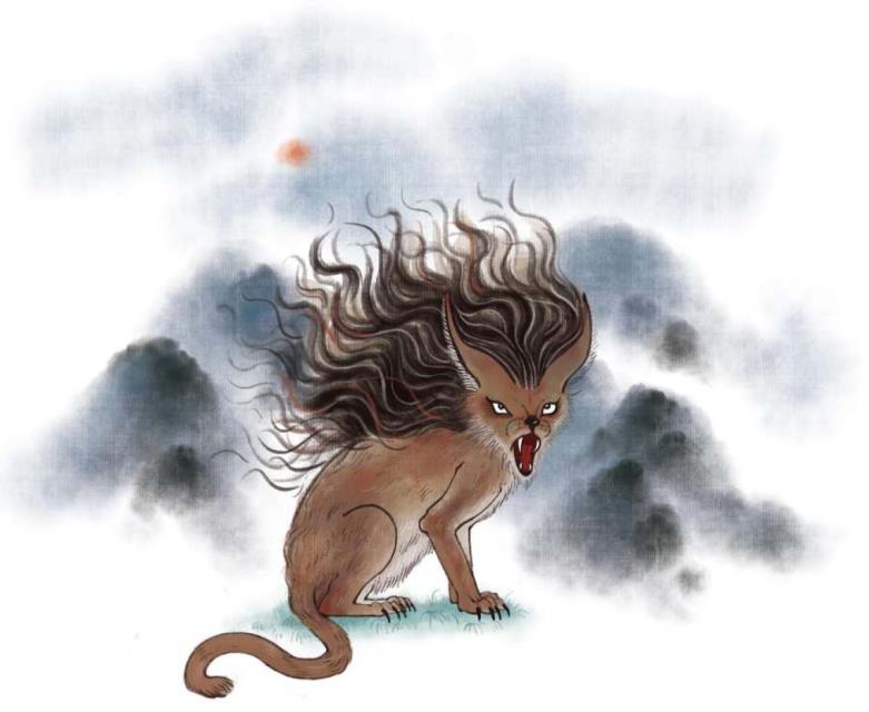 В четырёхстах ли к востоку от горы Дишань стоит гора Даньюань. На этой горе много воды, но нет ни деревьев, ни травы; на неё очень трудно подниматься. На этой горе обитает дикая кошка Лэй (1), обликом своим похожая на рысь, её голова и шея покрыты длинной шерстью. Эта кошка – гермафродит (2). Если человек съест её мясо, то никогда не будет испытывать чувства зависти и ревности.