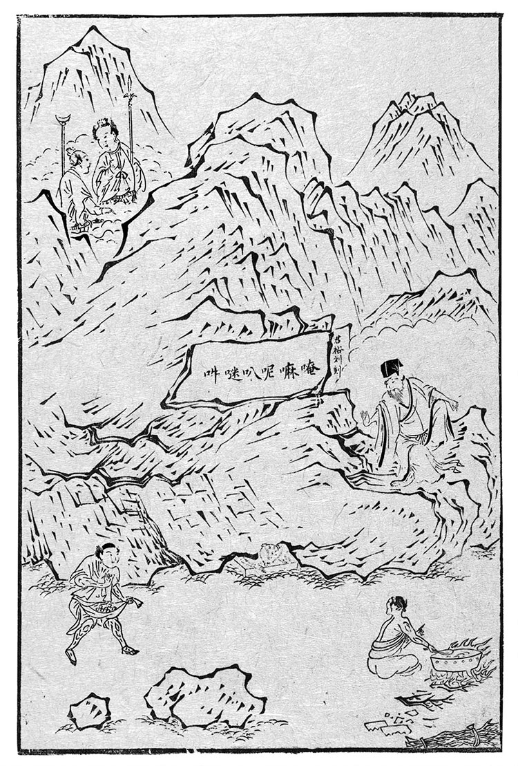 – Ну, это ничего не значит, – успокоил всех Будда и вытащил из рукава печать с надписью: «Ом мани падме хум»[24]. Передав печать Ананде, он велел ему поставить ее на вершине горы, под которой был заключен Великий Мудрец.