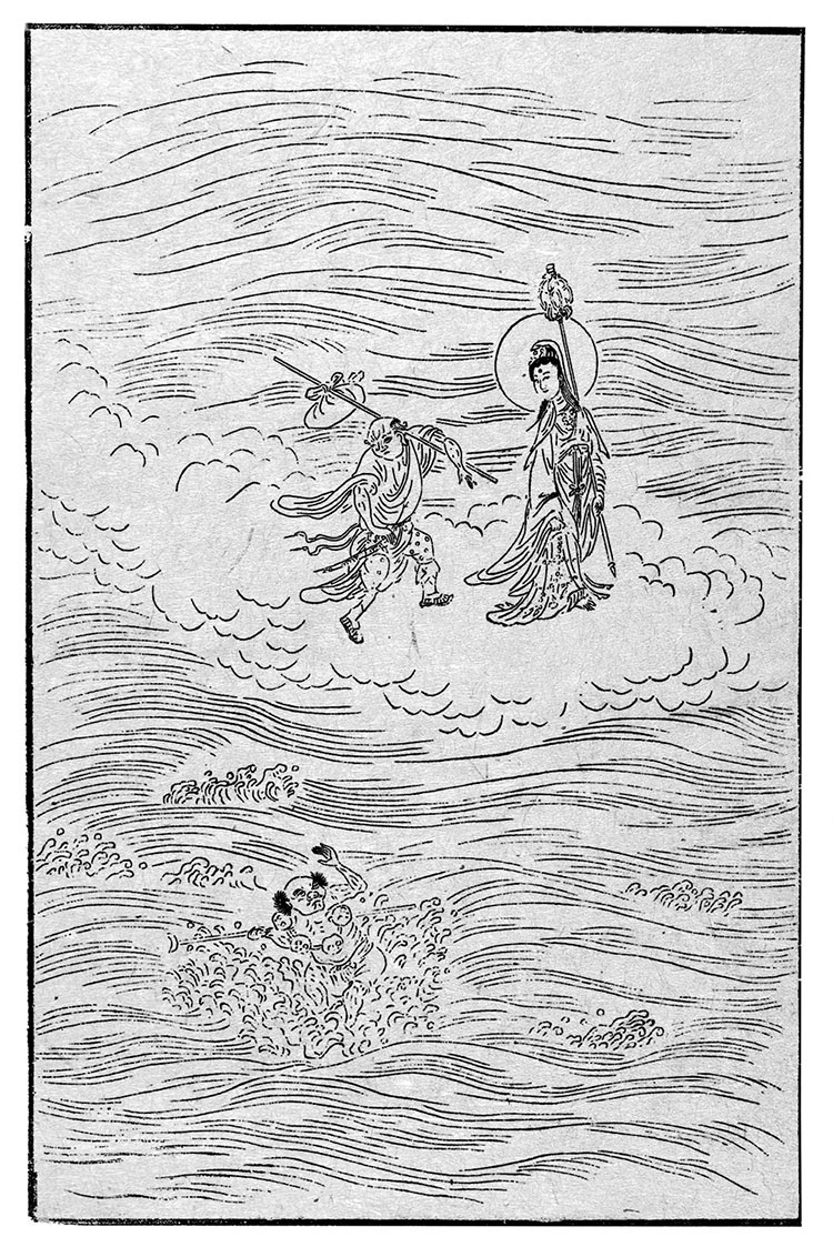– Ученик мой, – молвила Гуаньинь, – это место очень трудно перейти. А ведь паломник, который отправится за священными книгами, будет простым смертным. Как же он переправится здесь?
