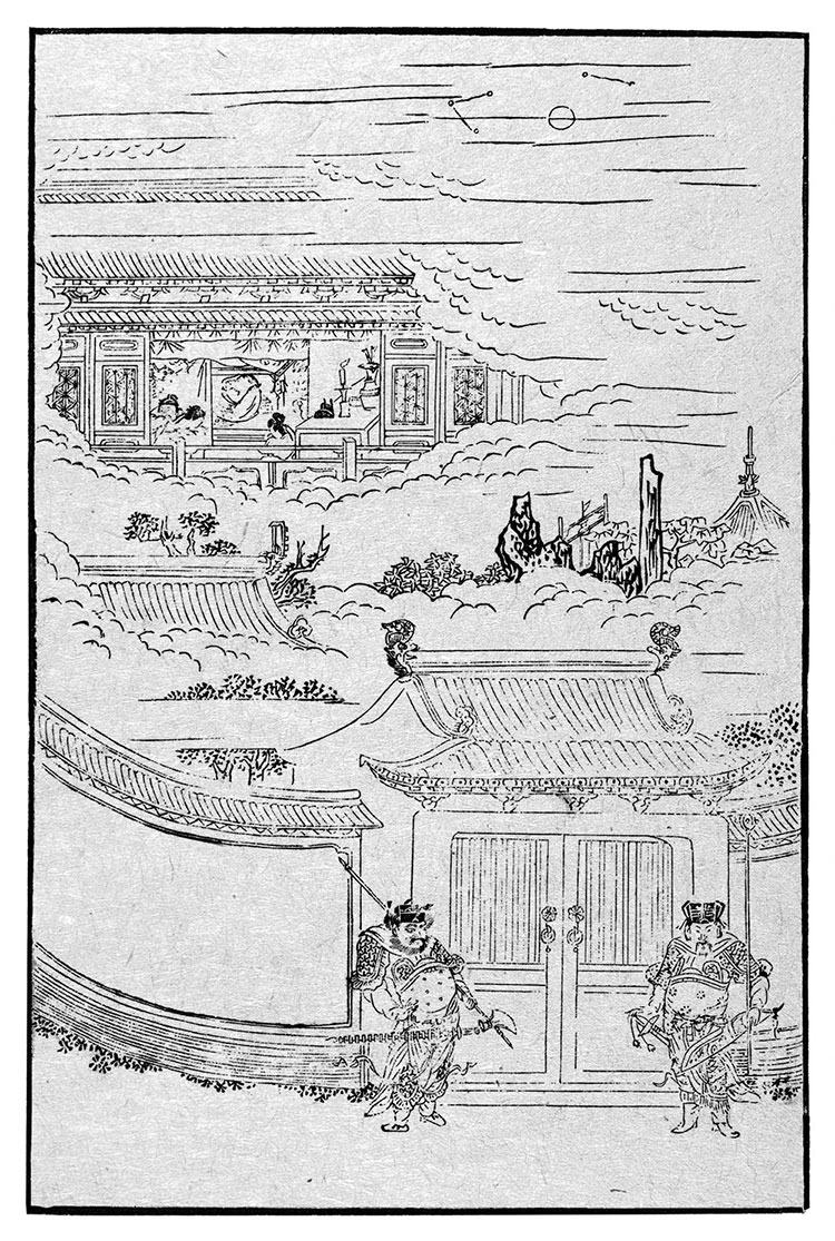 Однако через несколько дней грохот и шум по ночам стали раздаваться у задних ворот дворца, и снова в воздухе летали кирпичи и черепицы. Наутро император вызвал к себе сановников и сказал: