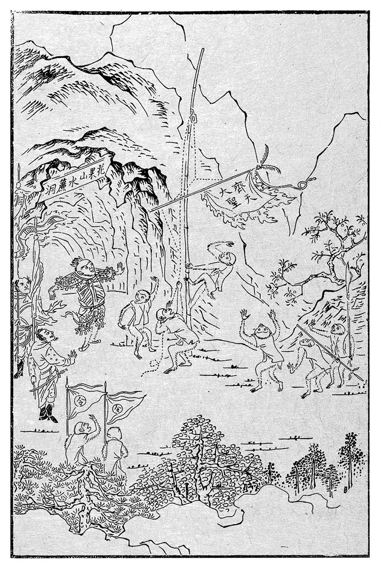 Вскоре на облаке он достиг Горы цветов и плодов и здесь увидел, как его четыре военачальника вместе с духами – правителями пещер производят военные учения.