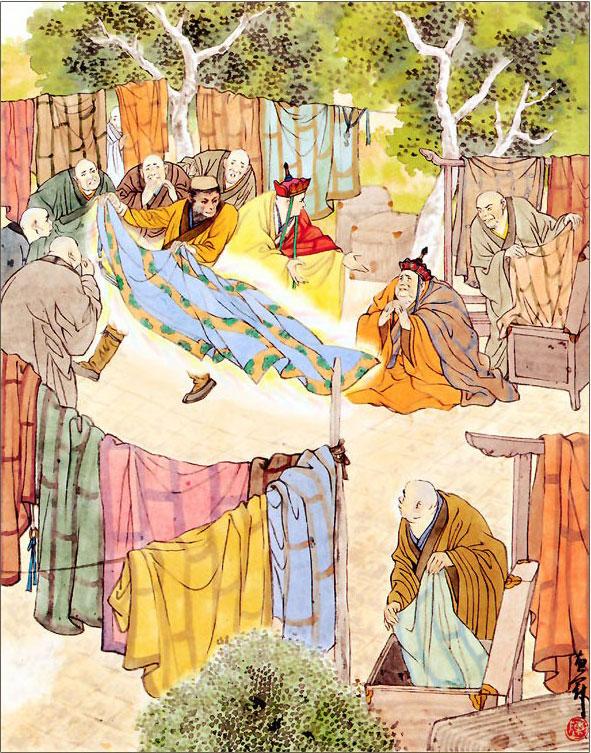 В этот момент государь как раз беседовал с Сюань-цзаном. Услышав, что прибыл третий зять, он, обращаясь к своим приближенным, сказал:
