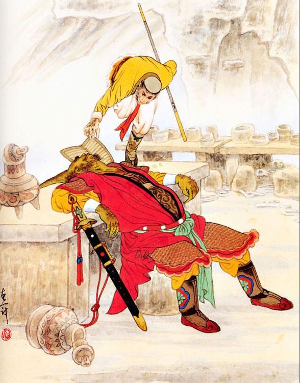 Сунь У-кун забрал оба ларца и, проведя рукой по лицу, принял свой настоящий вид.