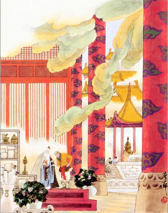 – Во-первых, все произошло из-за того, что у тебя большое счастье, просвещенный государь; во-вторых, в этом заслуга моего ученика. Я очень благодарен за роскошное угощение, и нам ничего больше не нужно! На этом мы раскланяемся и распрощаемся! Не надо задерживать нас в нашем путешествии на Запад!