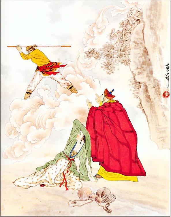 в которой рассказывается о том, как Сунь У-кун в ярости убил разбойников с большой дороги, и как Танский монах впал в заблуждение и прогнал от себя смышленую обезьяну