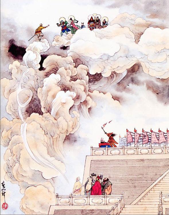 На праведника вновьОбрушилась беда:Его похитил враг –Вождь дьявольского стана.И сноваГибелью грозящая звездаВзошла над головоюСюань-цзана.Прижав вниз край облака, оборотень подтащил Танского монаха к входу в пещеру и крикнул: