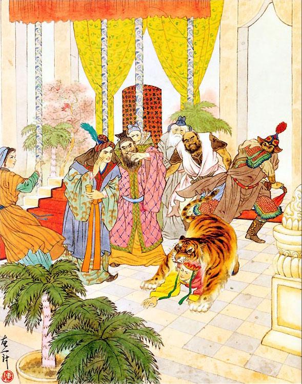 Двадцать третье, когда во дворце правителя страны Баосянго Танского наставника приняли за оборотня-тигра;