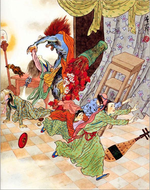 Увидев изваяния, Чжу Ба-цзе дернул за одежду Сунь У-куна.