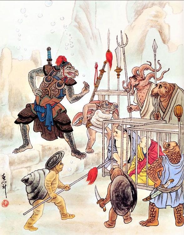 – Что ж поделаешь! – вздохнул Танский монах. – Хоть они и некрасивы, зато очень пригодились мне. Ступайте скорей, зовите их. Не то один из них, похожий на бога Грома, чего доброго, ворвется сюда, а он забияка и большой буян, так как произошел он не от человека.