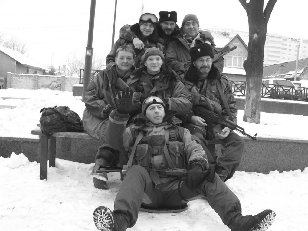 Карабах выгружает на землю колбасу и консервы, хлеб и патроны – не с пустыми руками пришли. Во дворе в бурых «горках», за плечом автоматы, стоят ополченцы. Сразу выделяется один – в казачьей папахе, с черной завитой бородой, разговорчивый и радушный.