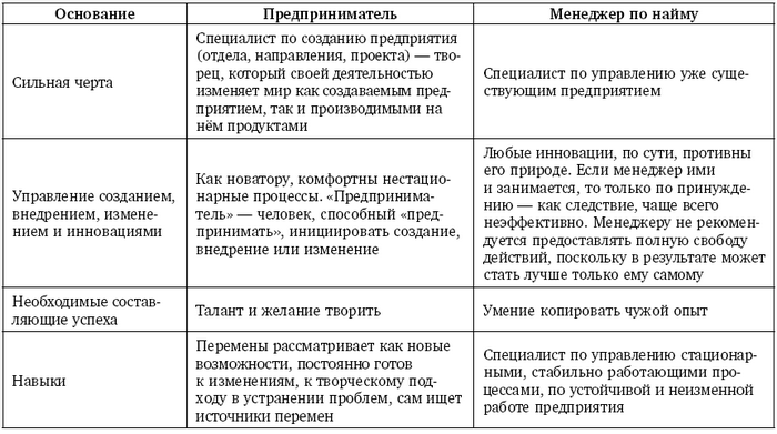 Сравнение понятий предприниматель и менеджер по найму