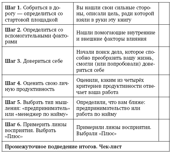 Задание. Вы уже сделали 5 из 50 шагов к усилению вашей личной эффективности. Просмотрите ещё раз свои наблюдения и выводы в Шагах 1, 2 и 4. Воспользовавшись позитивным мышлением (или линзой «Плюс»), перепишите их, если необходимо. Смоделируйте, каким образом вы смогли бы ещё усилить позитивный эффект. Каждое последующее действие должно быть реальным для вас. Не нужно придумывать ничего, что пока находится вне ваших возможностей.