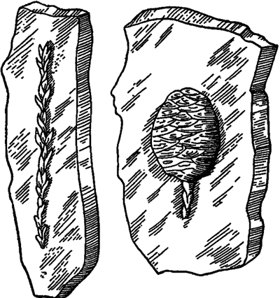 Рис. 10. Остатки ветви с шишкой ископаемой секвойи.